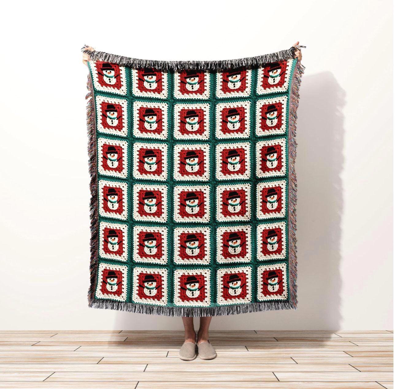 Cute snowmen in a traditional granny square pattern makes this throw blanket the perfect addition to your christmas cottagecore decor. It’s a premium, LIGHTWEIGHT throw blanket made from natural cotton. Super soft to touch, beautifully textured and wonderfully cozy. Perfect for bed or to make your couch extra comfy.