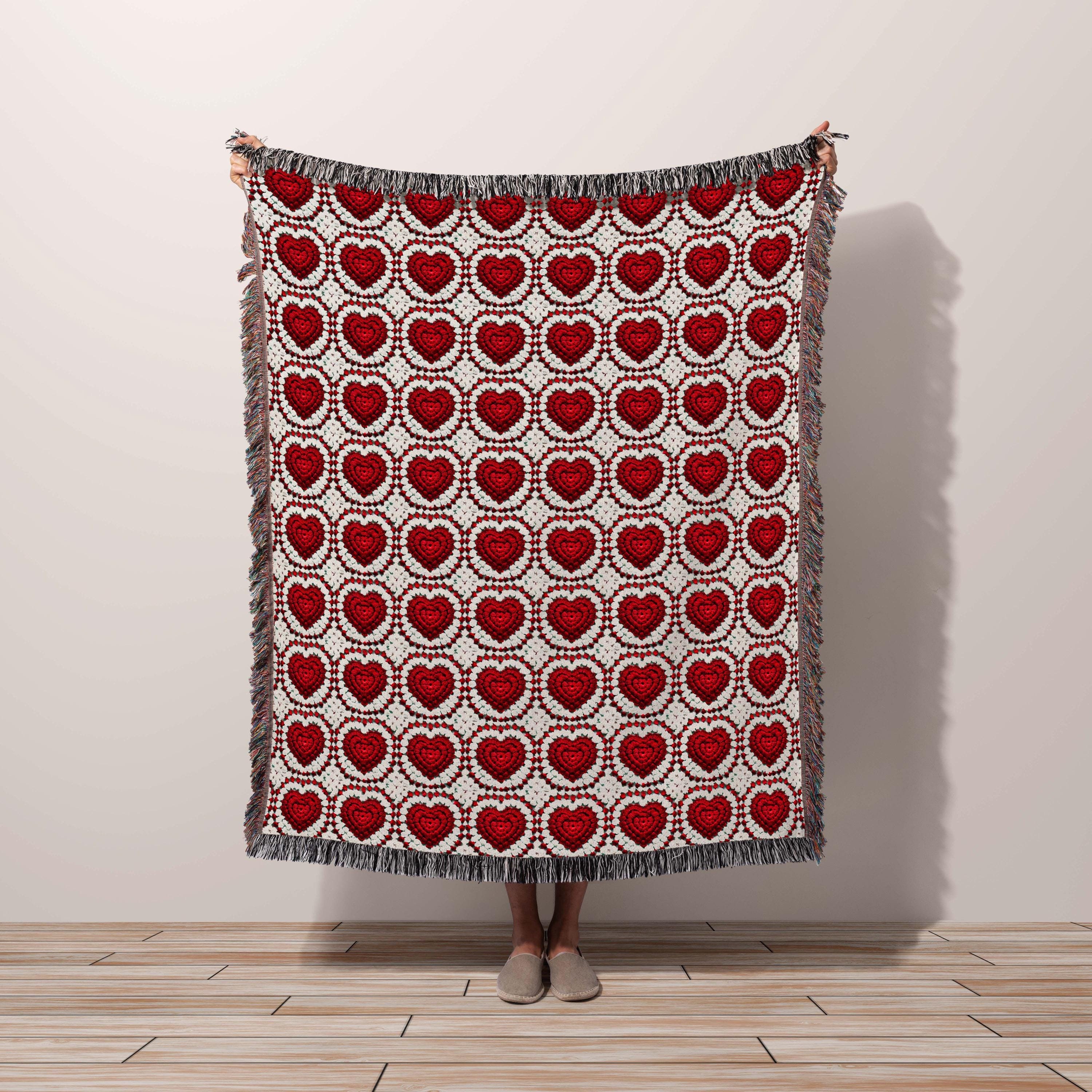 Design is woven into the blanket, NOT printed. It is not crochet, but a woven blanket.