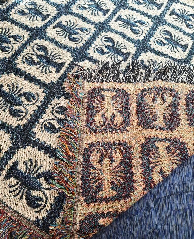 lobster blanket gift, coastal throw blanket, nautical home decor, beach house blanket, blue lobster decor, maine lobster gift, seafood lover gift, coastal granny square, nautical throw, ocean decor gift, beach cottage decor, coastal living, maritime blanket