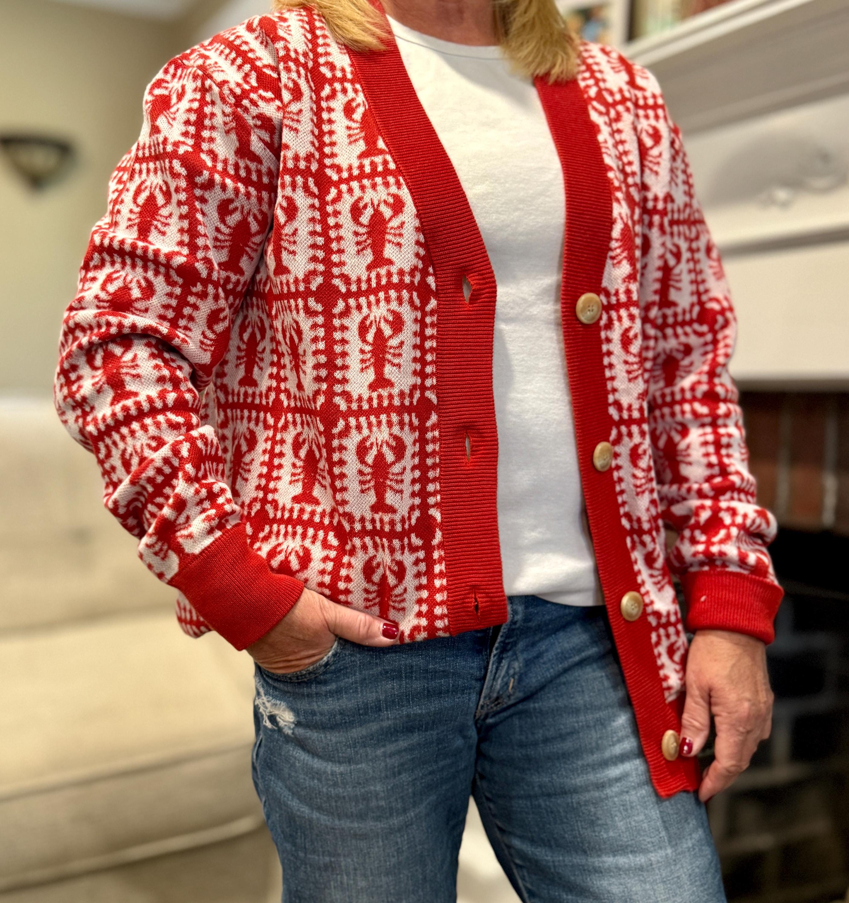 Whether you're strolling along the harbor, hosting a clambake, or just want to add some coastal charm to your everyday look, this lobster cardigan is the perfect blend of comfort and seaside style.
