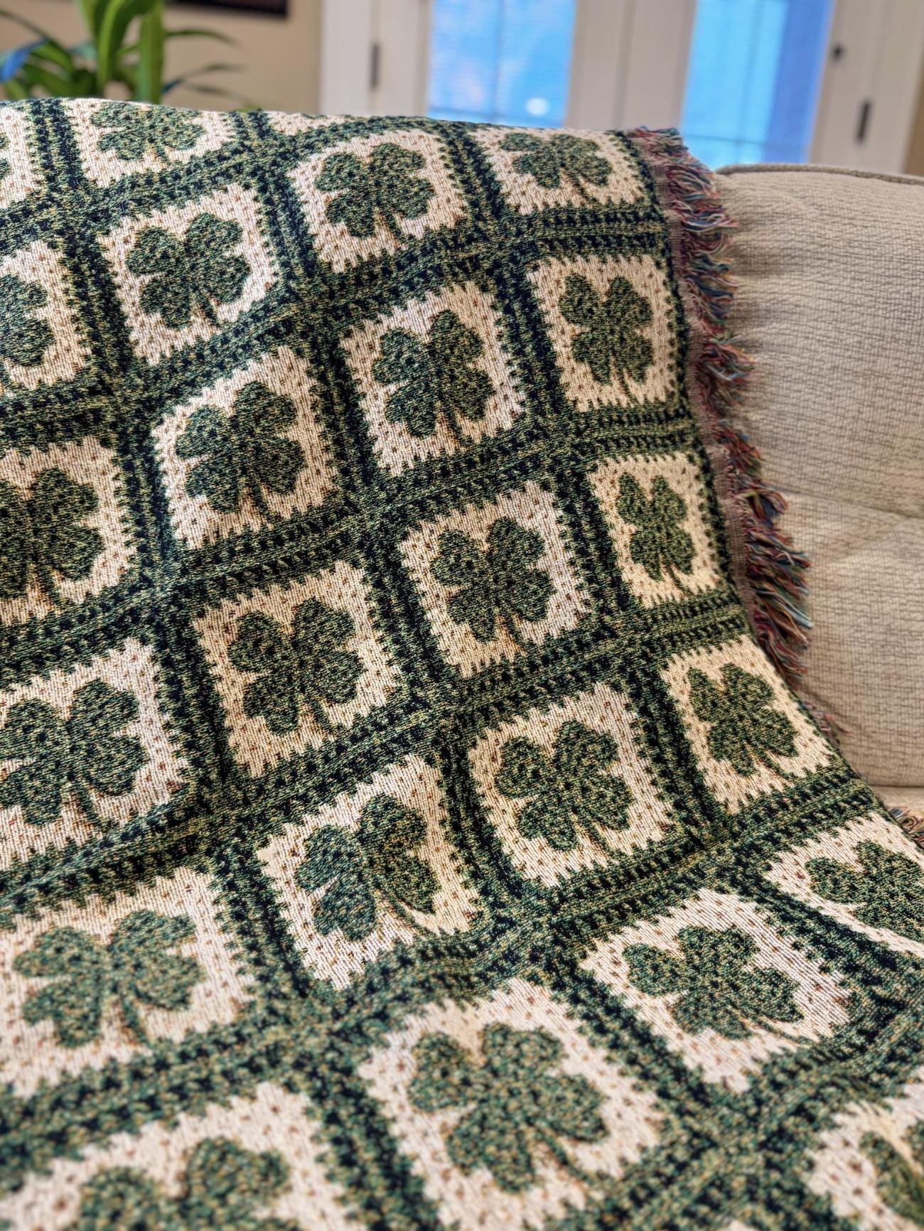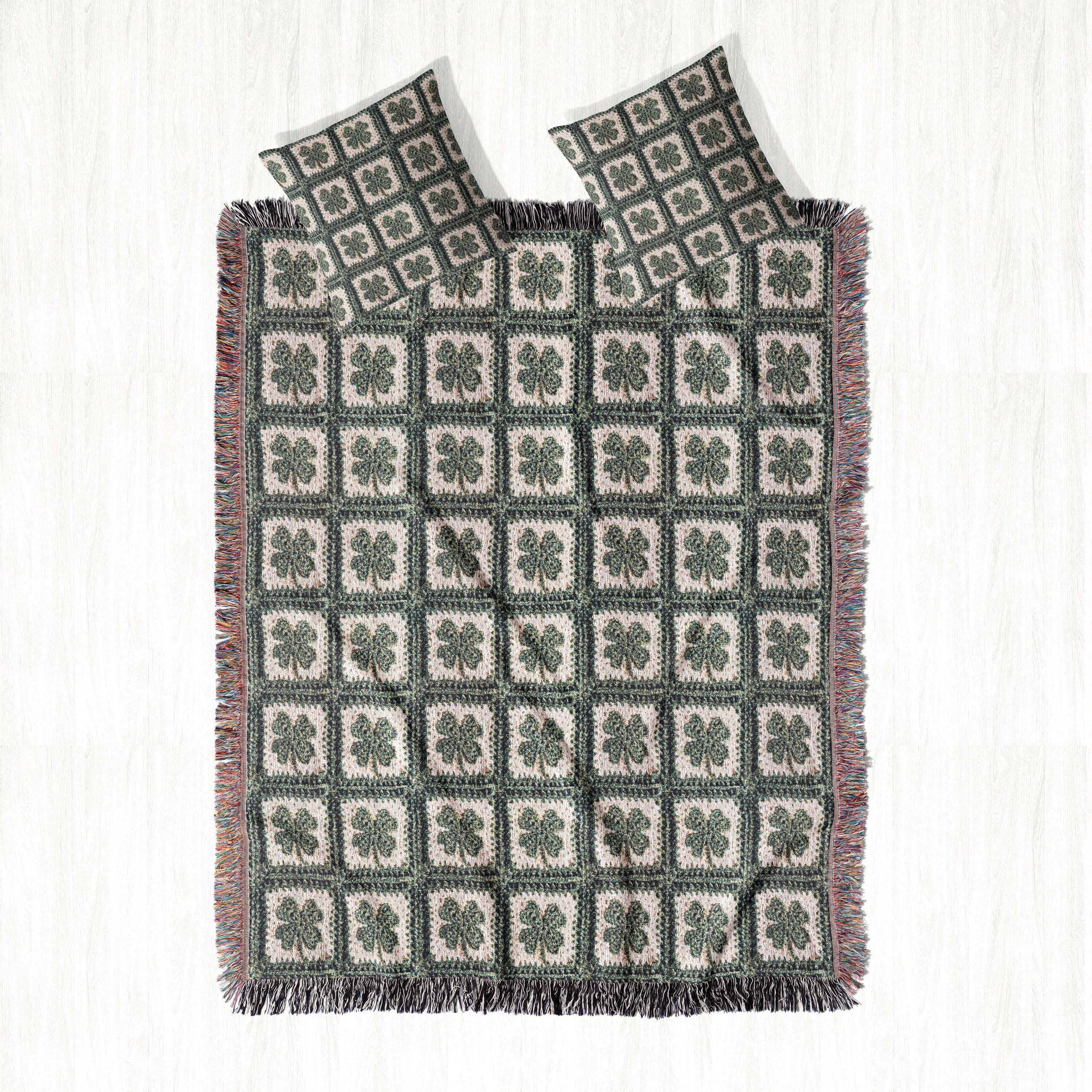 Bring a touch of charm and warmth to your space with this woven clover blanket and matching pillow set. Each piece is woven with care for that heirloom-quality texture — perfect for anyone who loves classic cottagecore or Irish-inspired home decor.