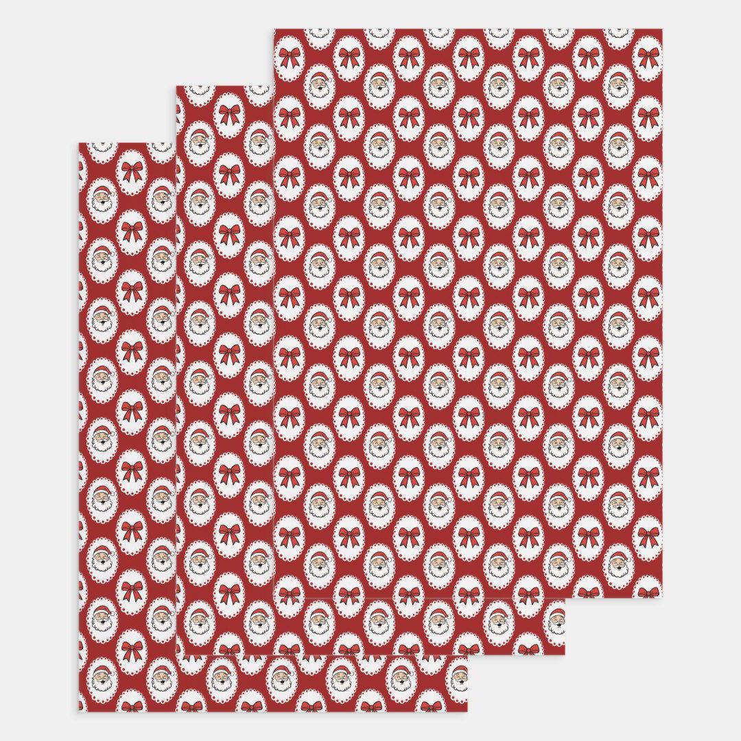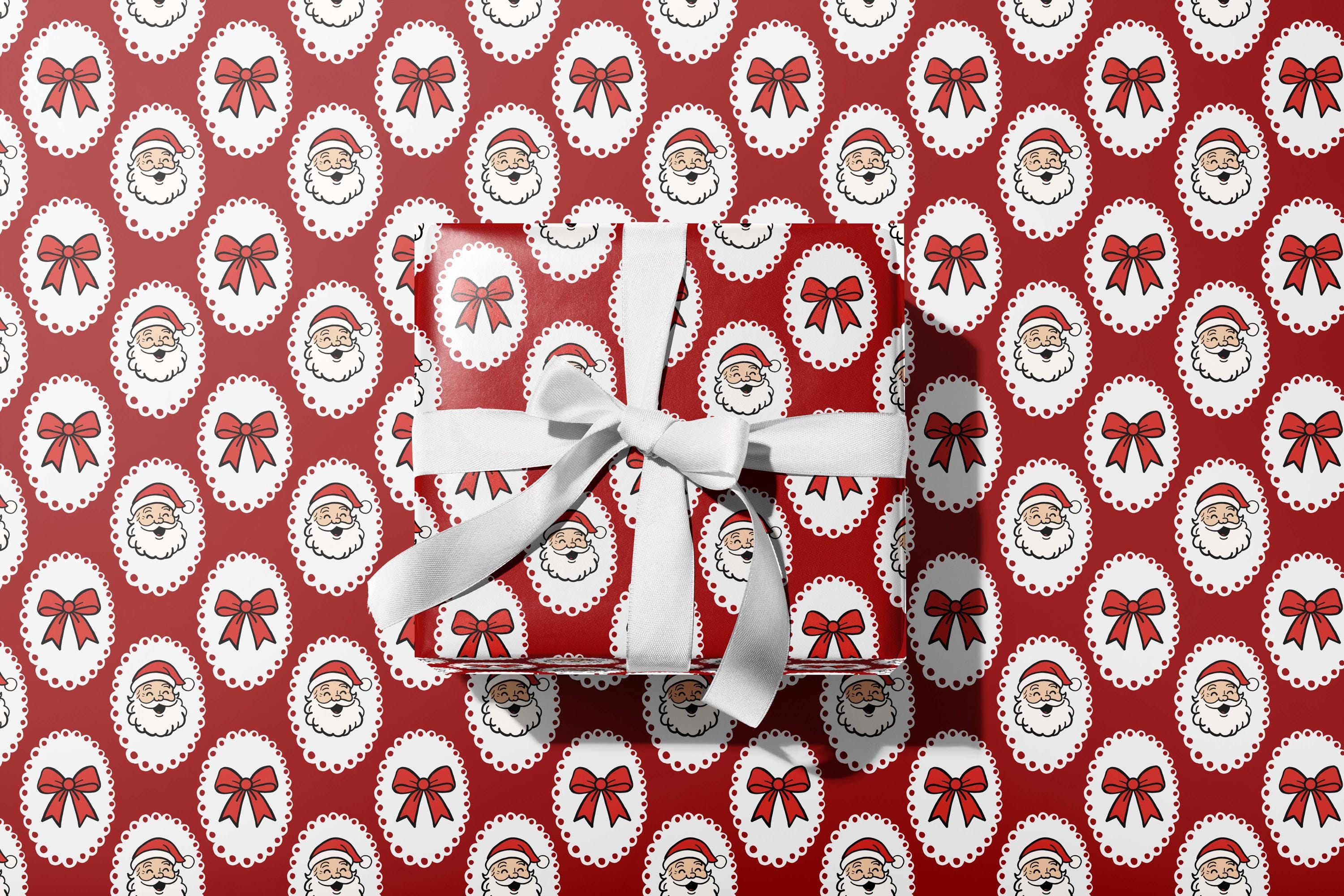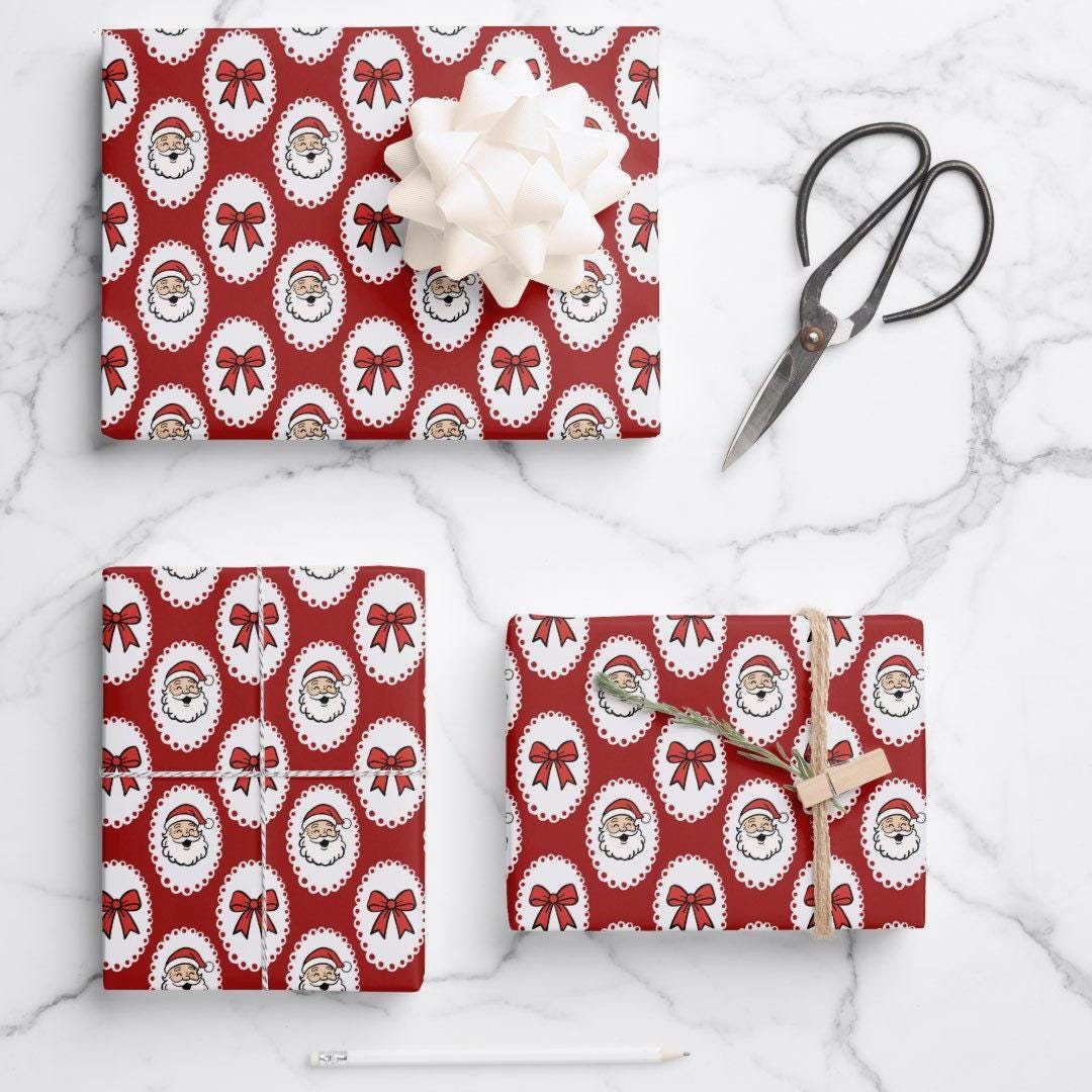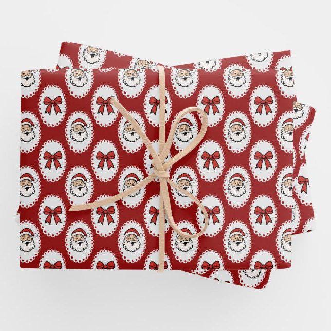 Wrap your gifts in festive nostalgia with this Retro Santa Christmas Wrapping Paper! Featuring charming vintage-style Santa faces framed in white scalloped ovals with red bows, this design brings the perfect mix of retro charm and holiday cheer.