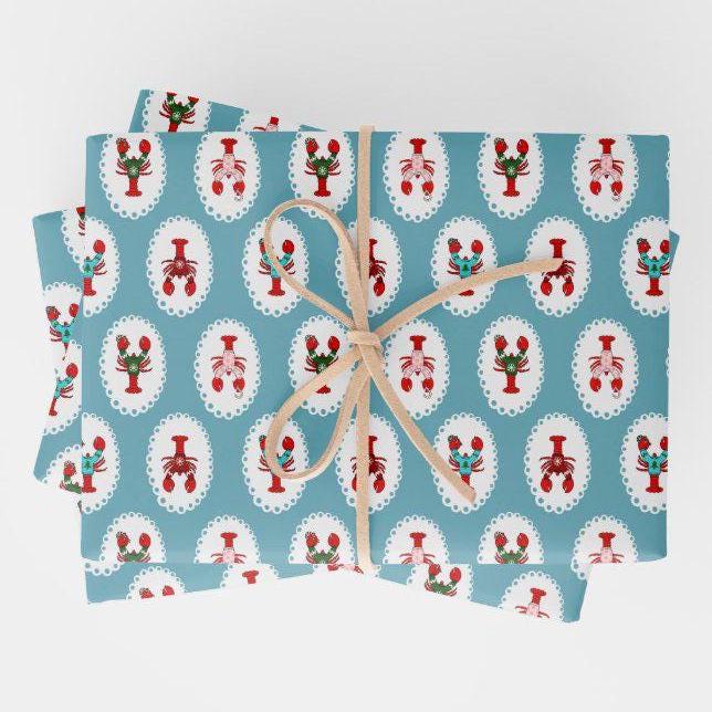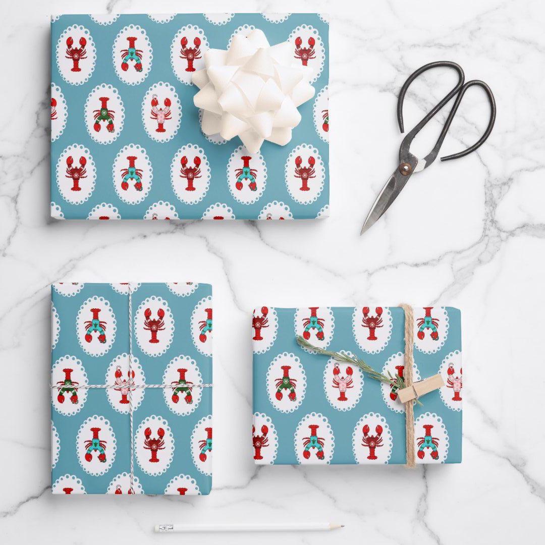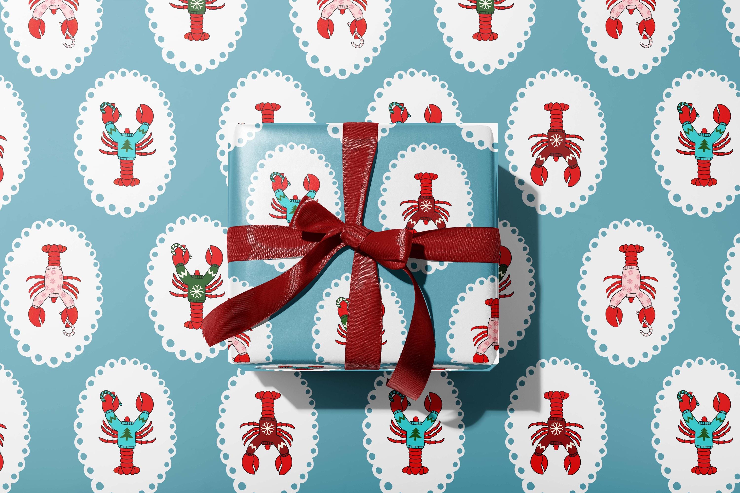 Add a splash of seaside humor to your holiday wrapping with this Lobster Christmas Wrapping Paper! Featuring charming red lobsters in cozy Christmas sweaters on a sea-blue background, it’s the perfect mix of New England coastal charm and festive cheer.