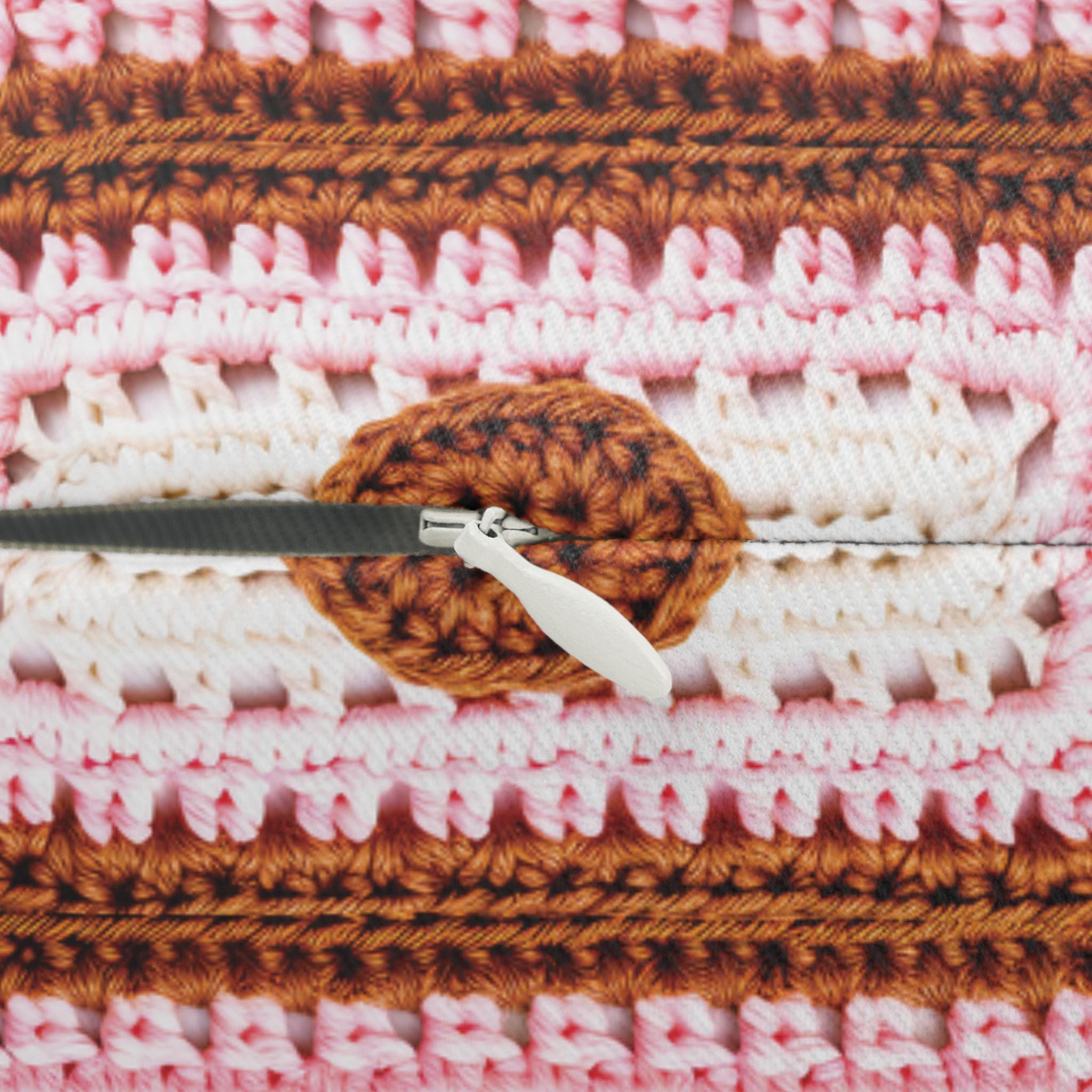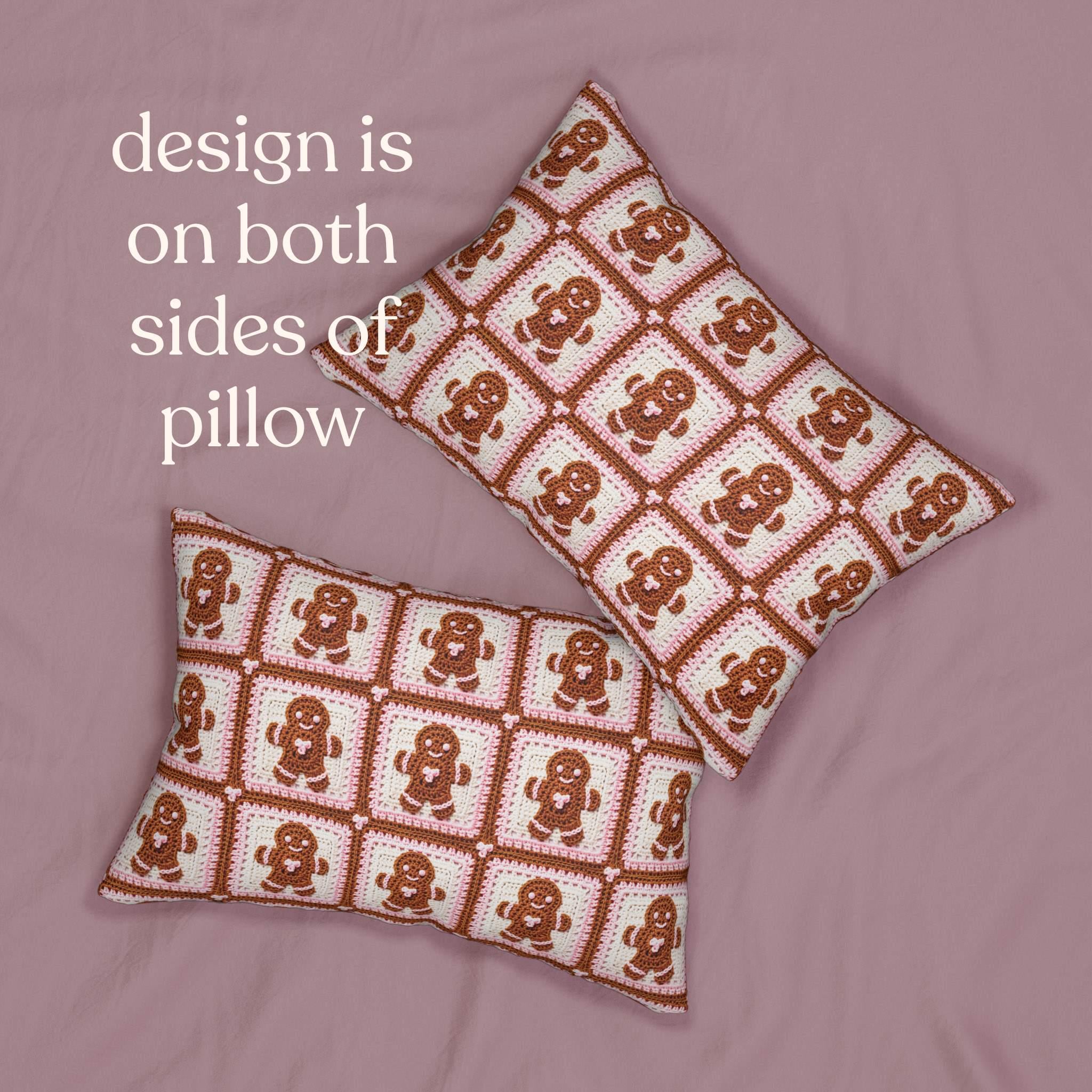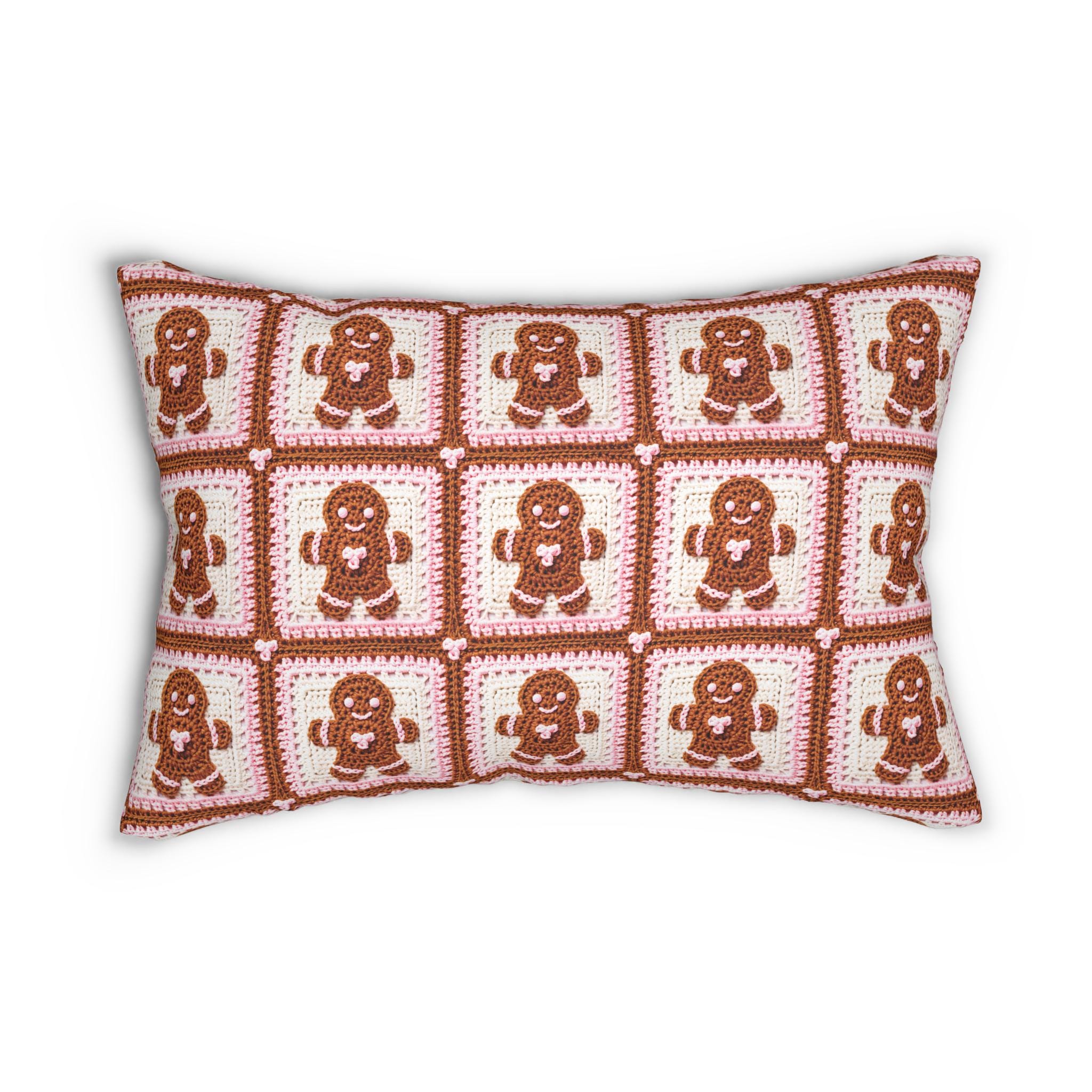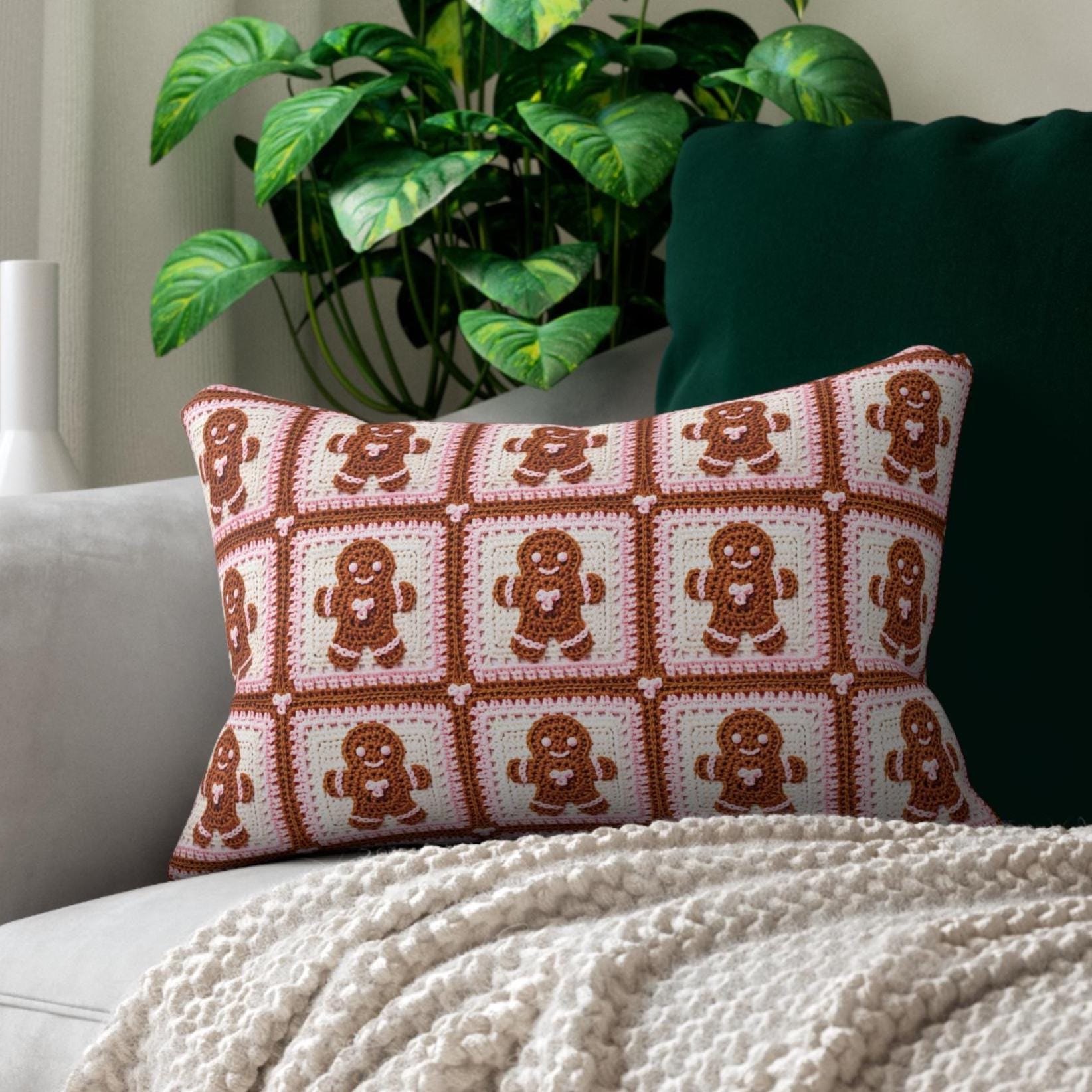 This faux crochet gingerbread pillow adds a cozy and festive touch to your home decor. Perfect for those who love a warm and inviting atmosphere during the holiday season. Ideal for anyone looking to enhance their living space with a touch of whimsy and charm, especially relevant for Christmas and winter celebrations.