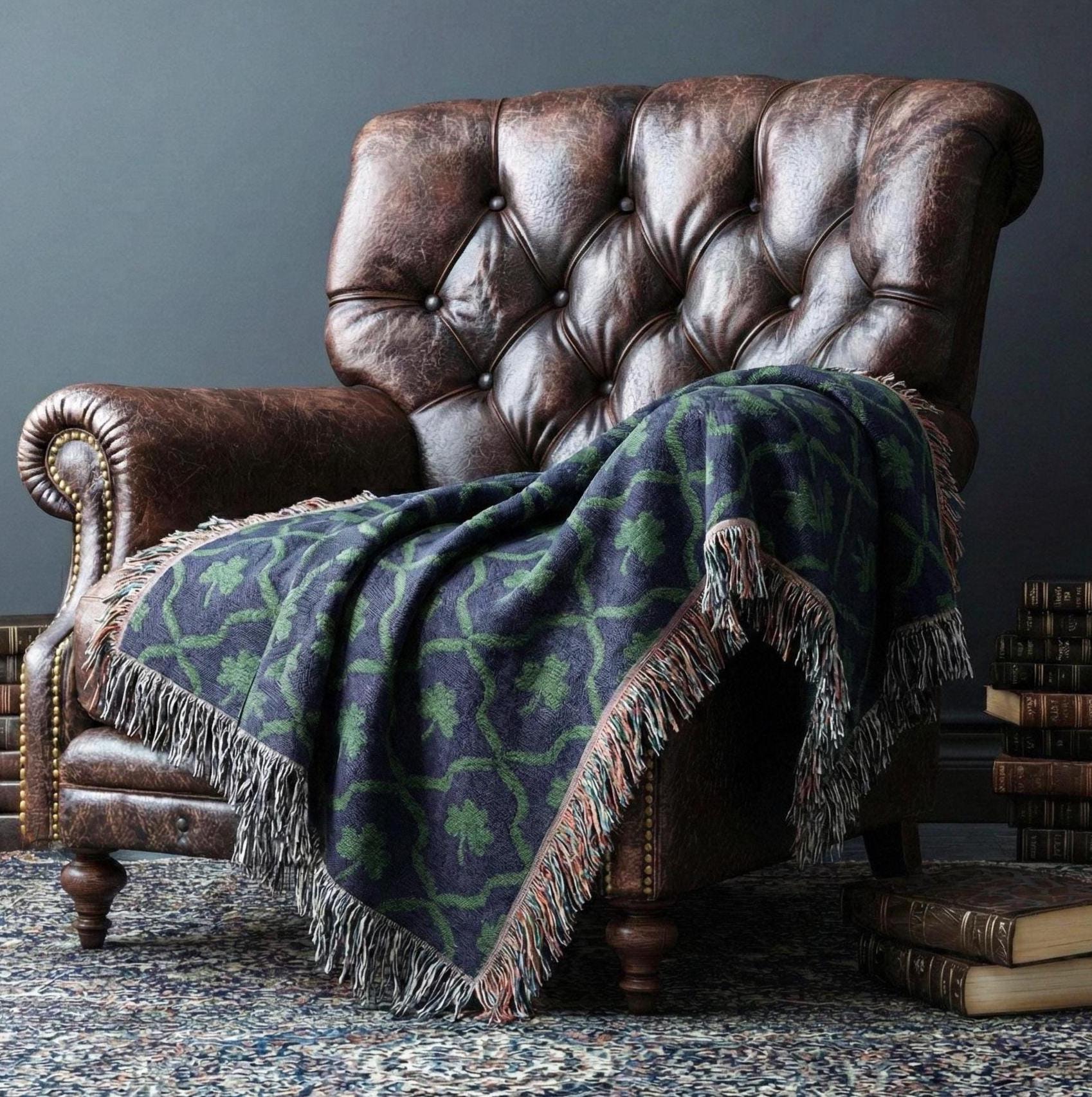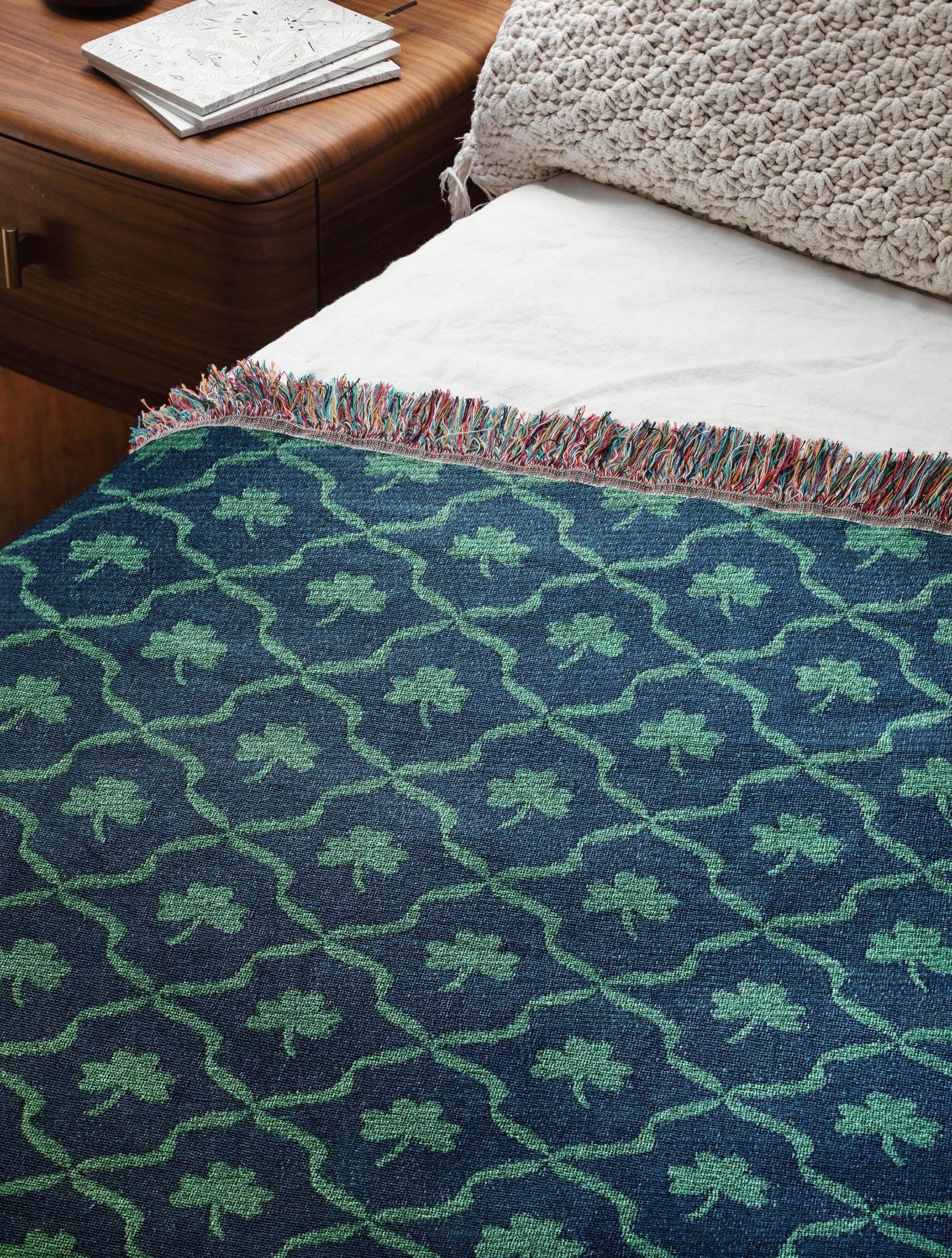 I designed this shamrock lattice pattern in my Chicago studio because I wanted an Irish blanket that felt like a real heirloom, something with weight and warmth, not another thin printed throw. Each one is woven by our textile partner in the United States from 100% cotton. No printing, no polyester, no overseas mass production. Just a quality woven blanket you'll want to keep for years.