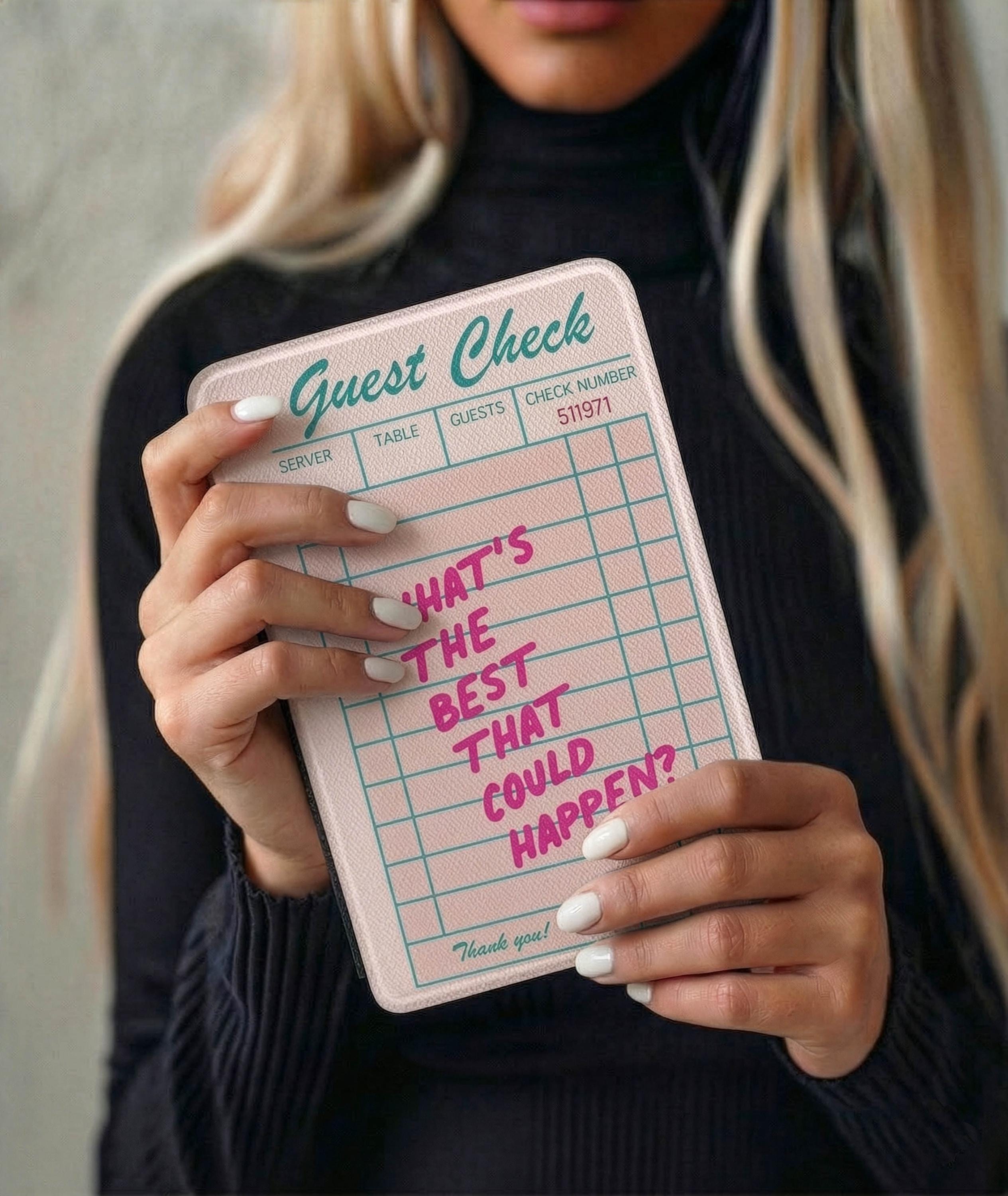 It looks like a real diner check. It reads like a personality. It's the Kindle case for the person who treats their reading time like a sacred appointment — and has the receipts to prove it. Makes a standout gift for readers, brunch enthusiasts, and anyone whose love language is a well-timed one-liner.