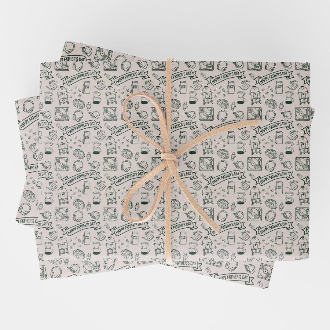Because generic striped paper is not a personality. This set is designed for the dad who has a thing — the pour-over guy, the vinyl guy, the guy who treats his smoker like a second child. Wrap his gift in something that actually looks like him.